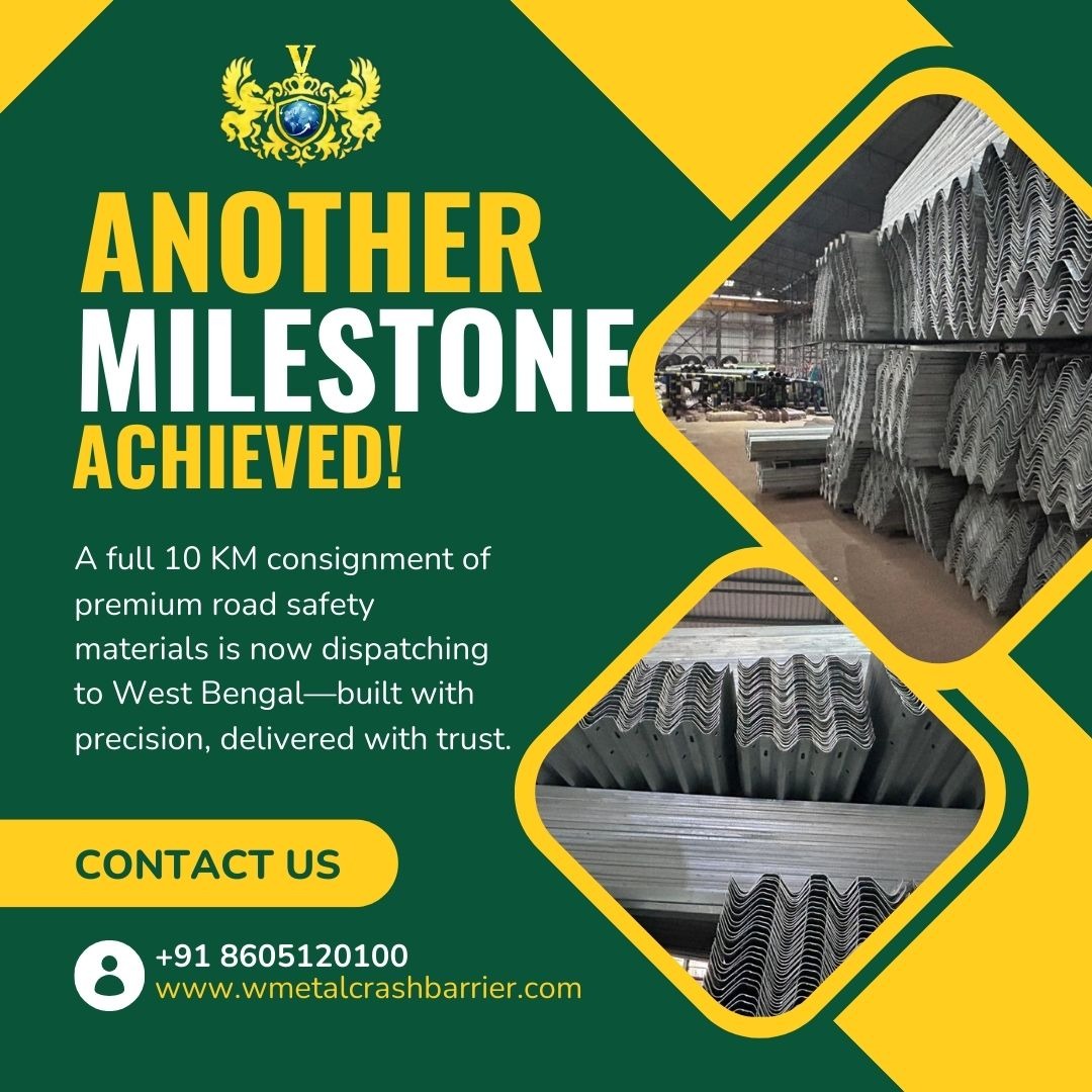 Proud to dispatch a 10 KM consignment of W Metal Beam Crash Barriers to West Bengal, reinforcing our position as a leading road safety products manufacturer in Indore.